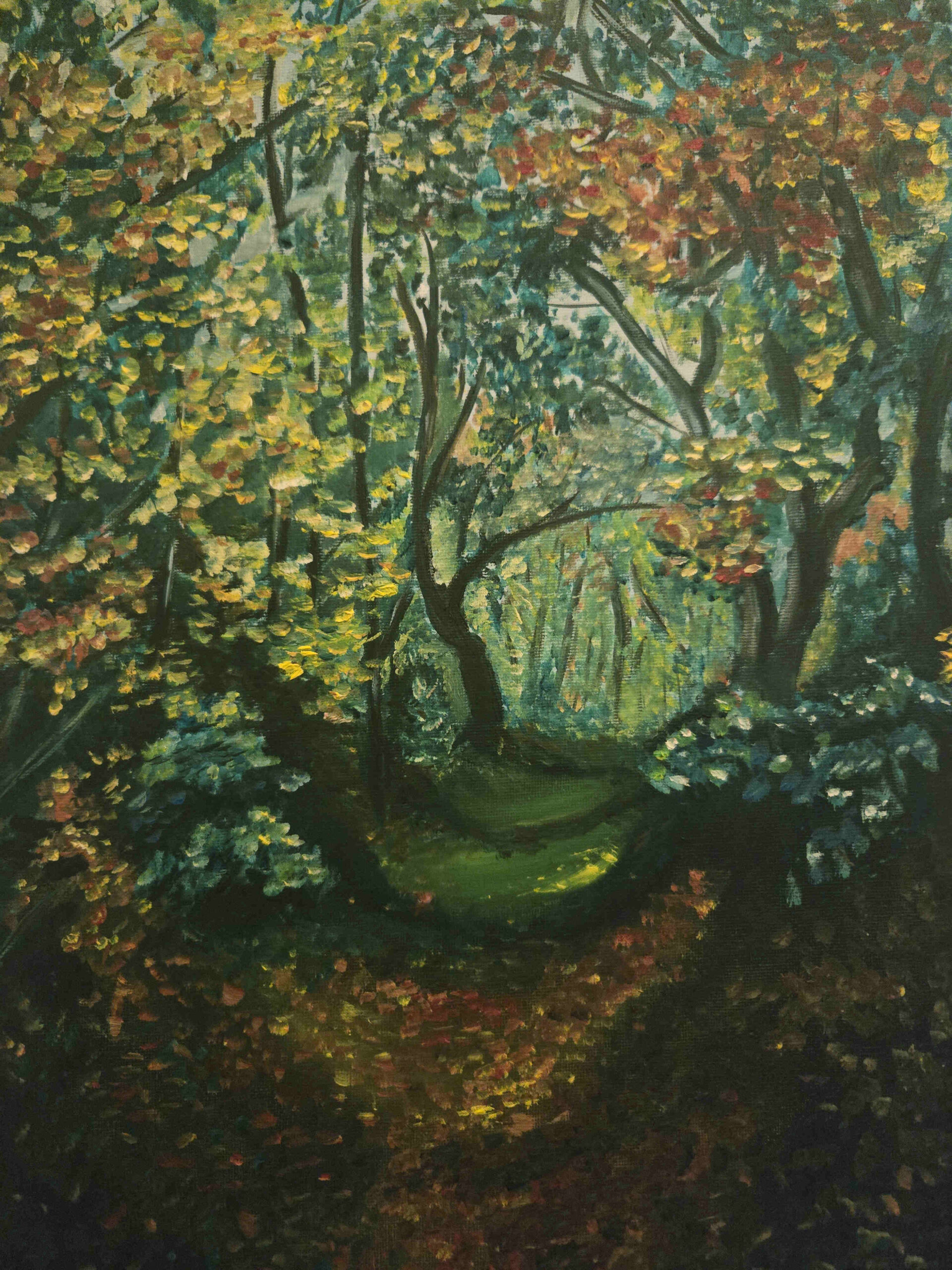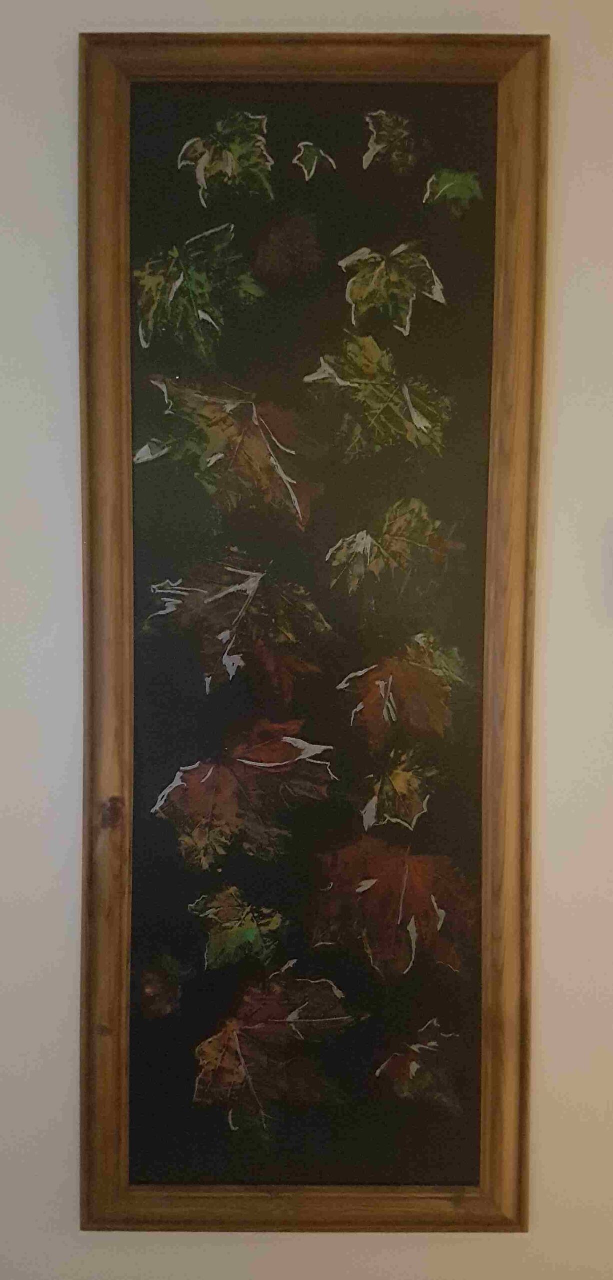 Autumn, 30x90cm acrylic stamped leaves on mat board, €75